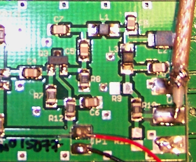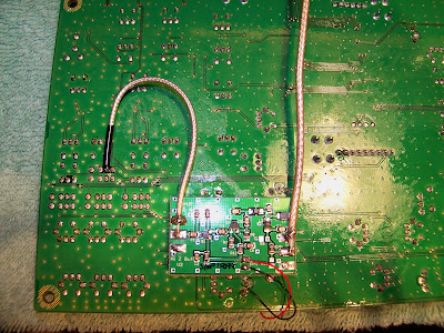 Final connection before installing the RX-1 back into the radio is an approximate 28" length of RG-316 to the PAT board's output solder pad. Once complete, the RX-1 board can now be installed back in the radio, while carefully routing the unterminated RG-316 towards the rear panel SMA attachment point.